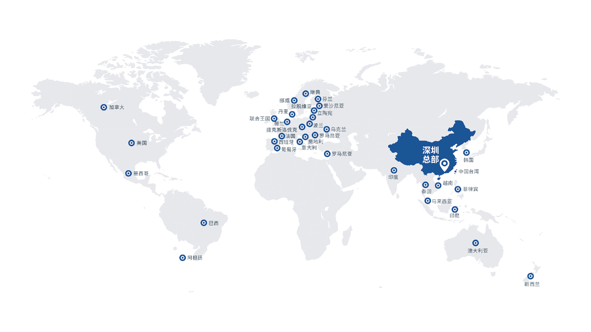 立足于國內(nèi)深圳、張家港、常州、天津、長沙、蘇州、濟南生產(chǎn)基地與備品備件庫,國內(nèi)外轄180+辦事處,在100多個國家和地區(qū)設(shè)立銷售服務(wù)機構(gòu),為全球用戶提供高品質(zhì)的產(chǎn)品與優(yōu)質(zhì)高效的服務(wù)。